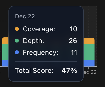 A stacked bar chart shows your daily adoption scores over time. The chart uses three colors representing the score's dimensions:
